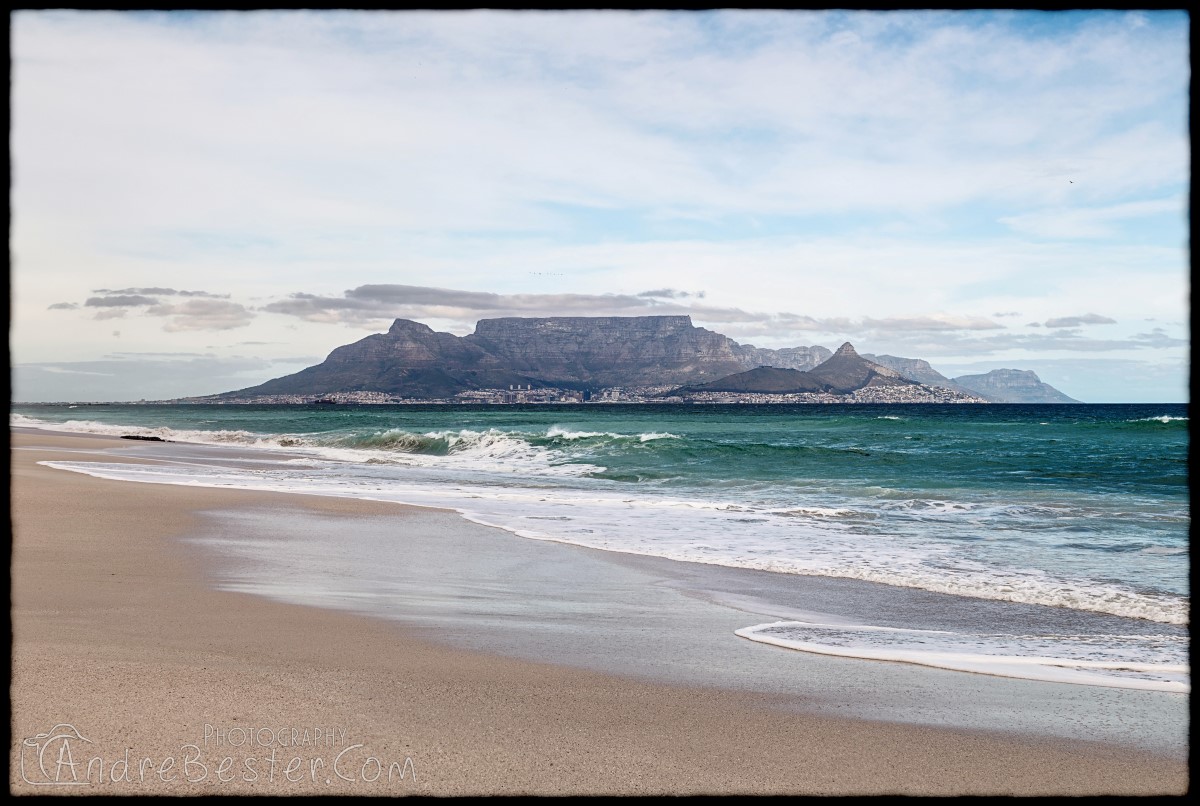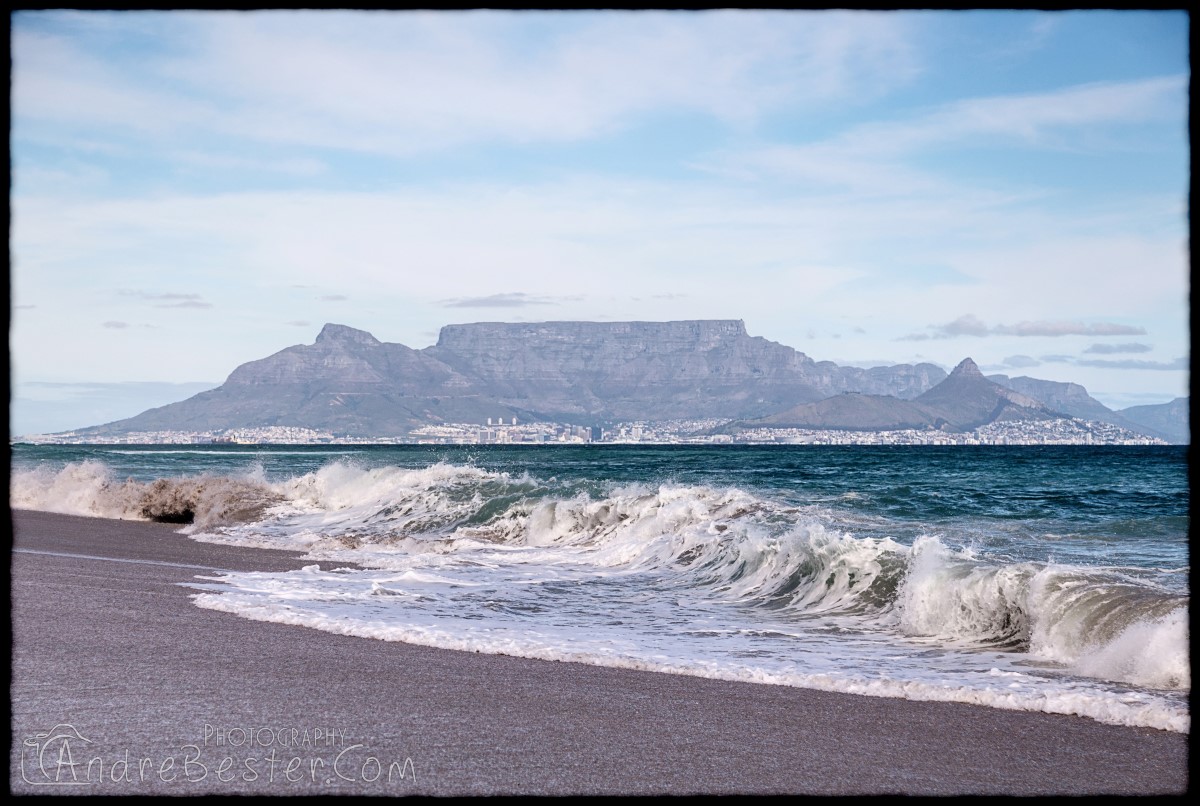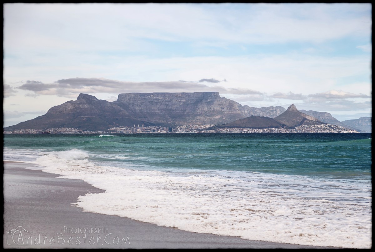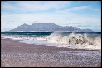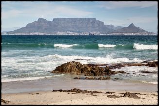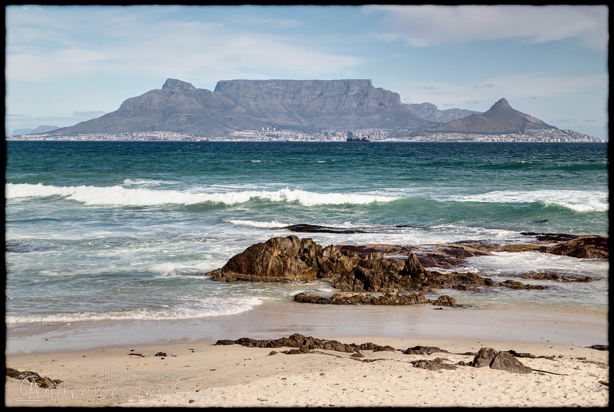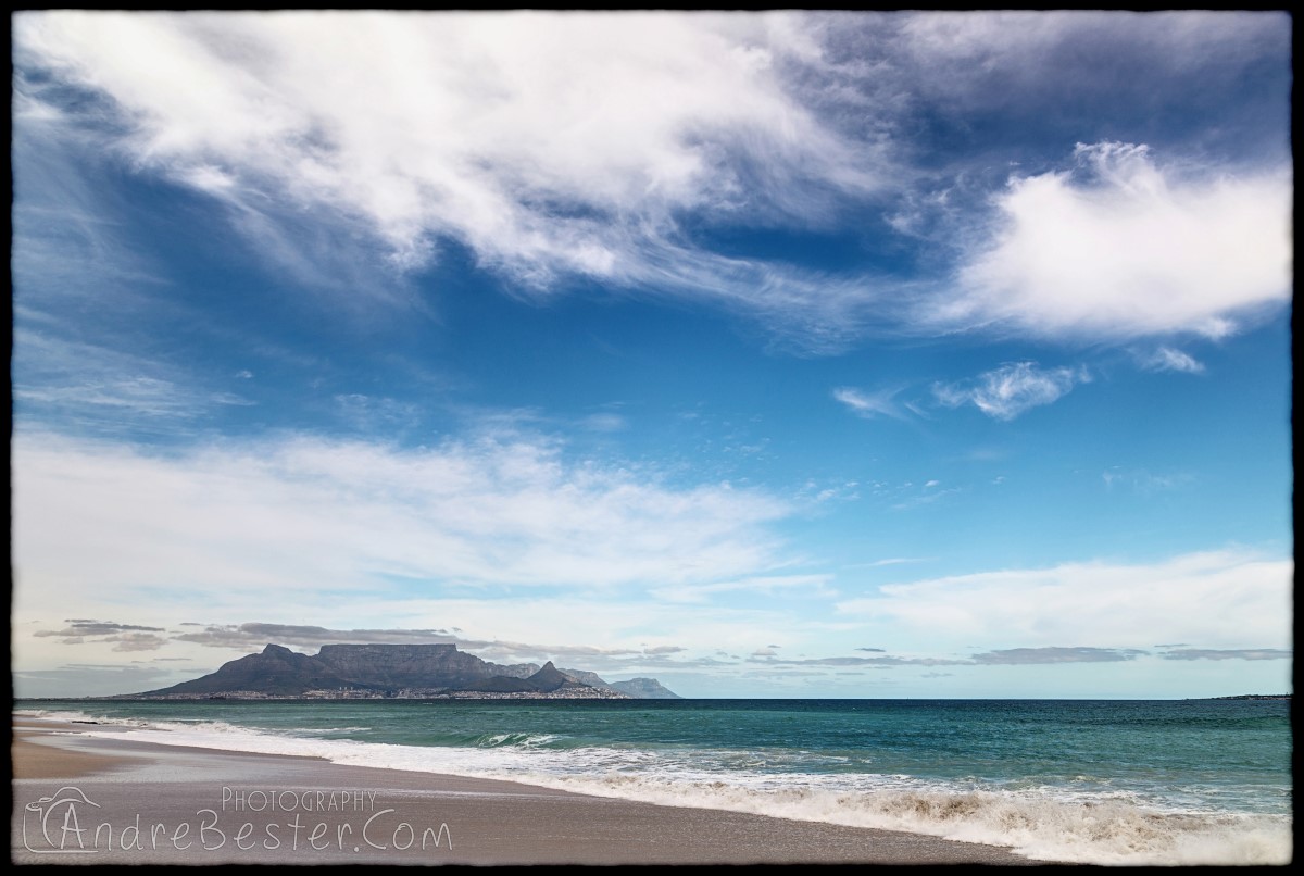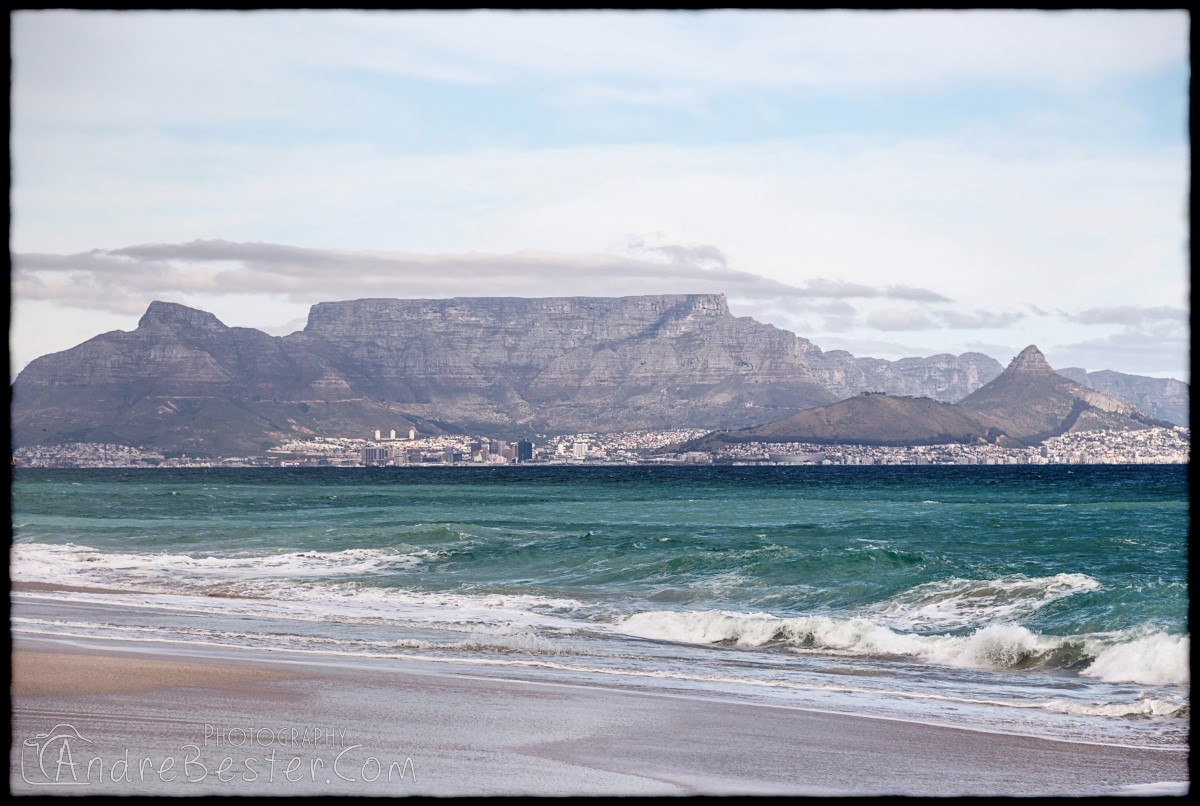 Bloubergstrand is a suburb of Cape Town along the shores of Table Bay, 15 km due north of the city centre of Cape Town. The name Bloubergstrand literally means "blue mountain beach" in Afrikaans, and is derived from Blaauwberg, a nearby mountain. Bloubergstrand is mainly a residential area, and attracts large numbers of visitors. The beach at Bloubergstrand is a popular location for a classic view of Table Mountain across the bay. Robben Island is located 6,9 km west of the coast of Bloubergstrand.