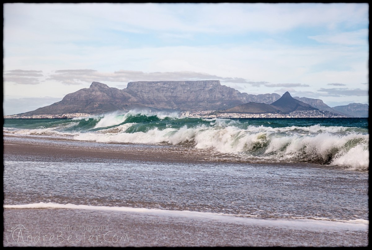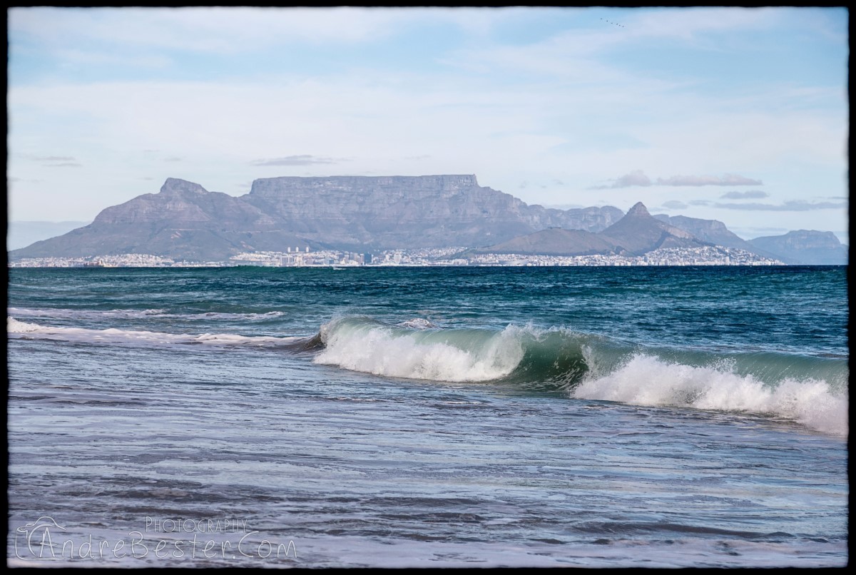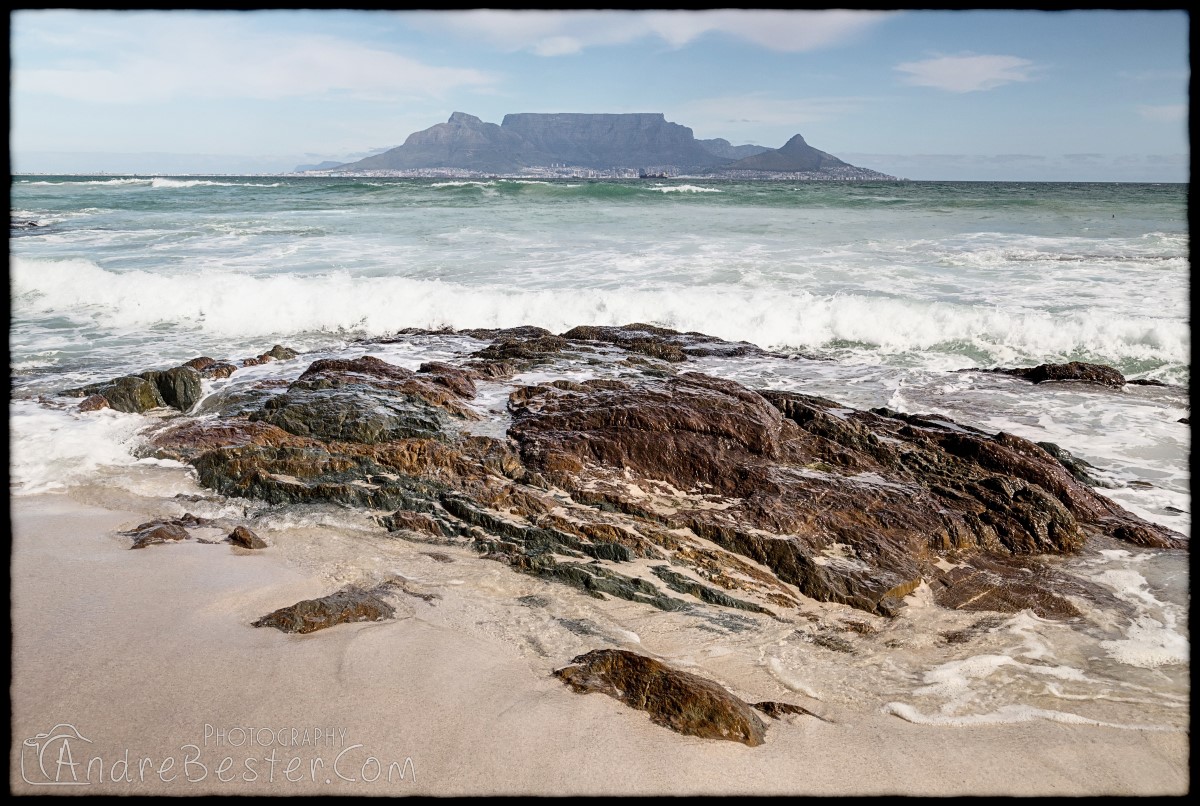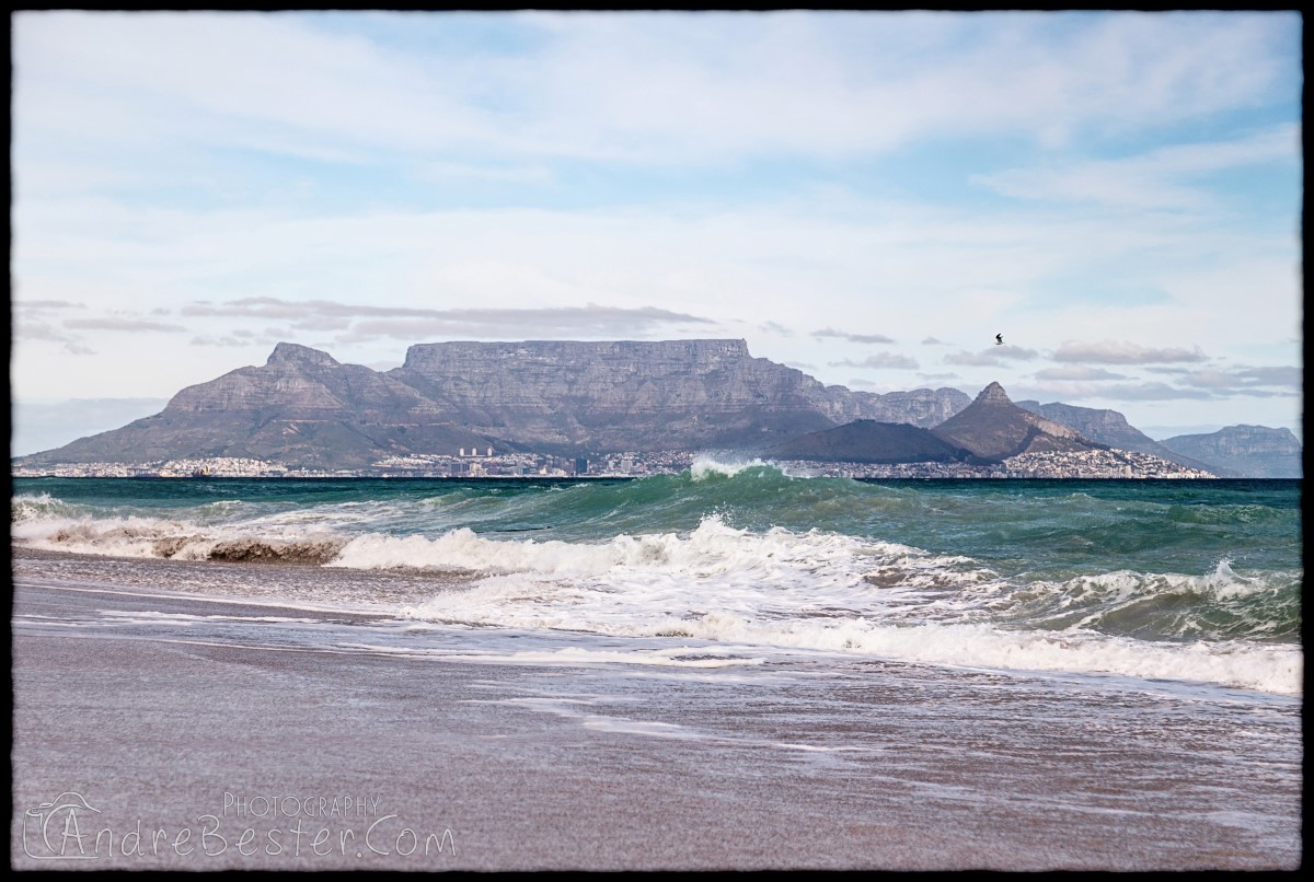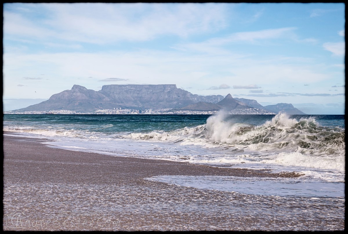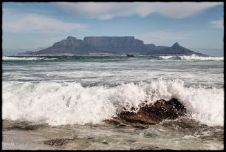 Bloubergstrand is a suburb of Cape Town along the shores of Table Bay, 15 km due north of the city centre of Cape Town. The name Bloubergstrand literally means "blue mountain beach" in Afrikaans, and is derived from Blaauwberg, a nearby mountain. Bloubergstrand is mainly a residential area, and attracts large numbers of visitors. The beach at Bloubergstrand is a popular location for a classic view of Table Mountain across the bay. Robben Island is located 6,9 km west of the coast of Bloubergstrand.