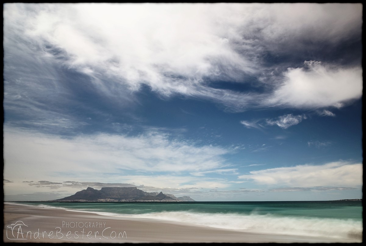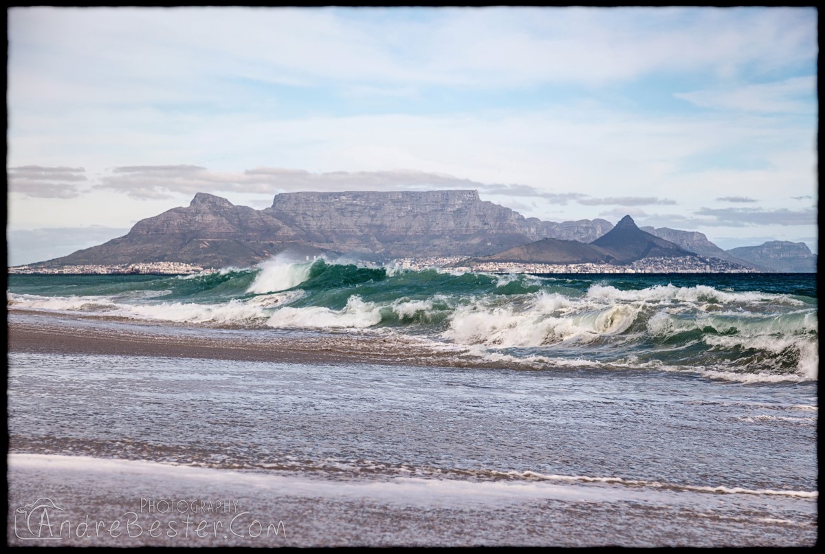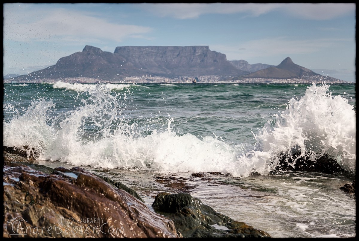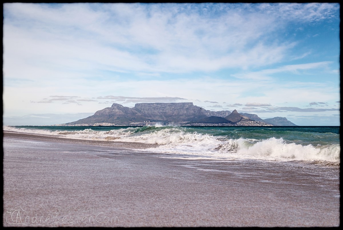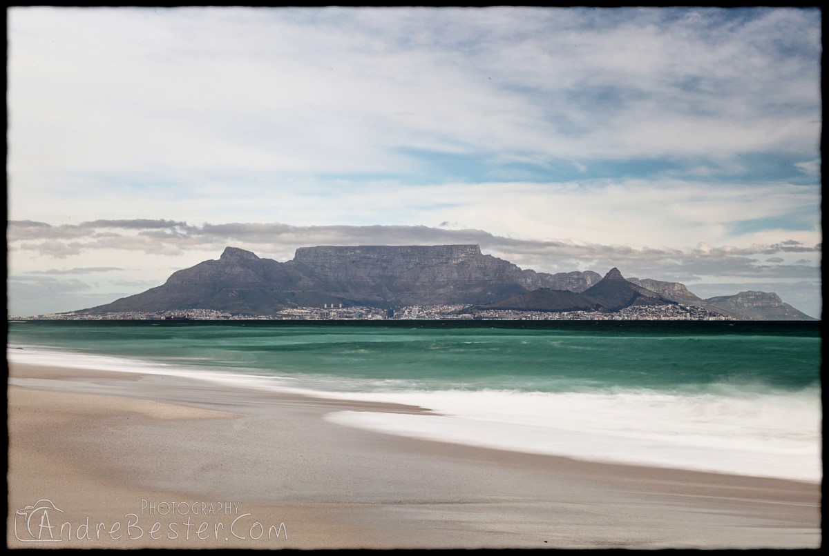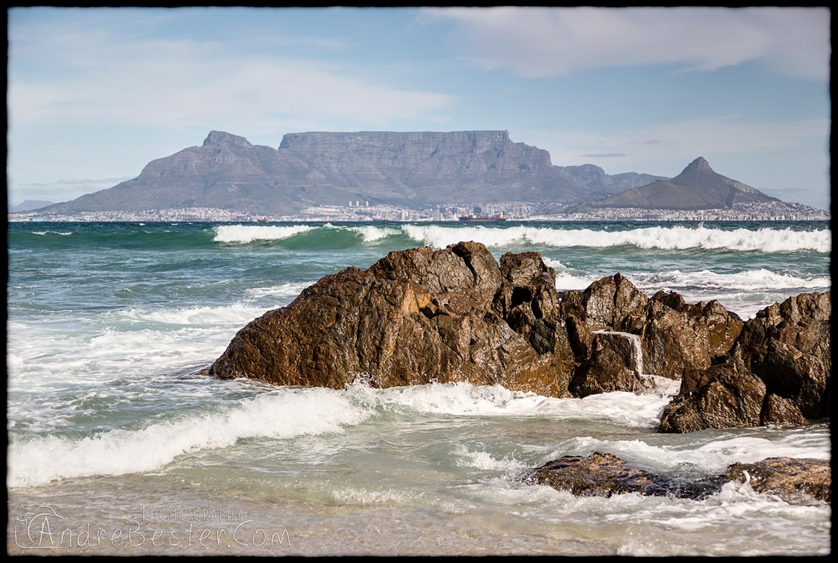 Bloubergstrand is a suburb of Cape Town along the shores of Table Bay, 15 km due north of the city centre of Cape Town. The name Bloubergstrand literally means "blue mountain beach" in Afrikaans, and is derived from Blaauwberg, a nearby mountain. Bloubergstrand is mainly a residential area, and attracts large numbers of visitors. The beach at Bloubergstrand is a popular location for a classic view of Table Mountain across the bay. Robben Island is located 6,9 km west of the coast of Bloubergstrand.