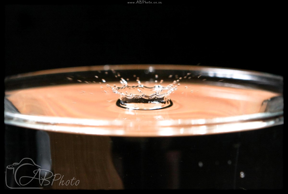 Here I experimented with high speed photography by catching the moment a drop of water hits a glass of water.
